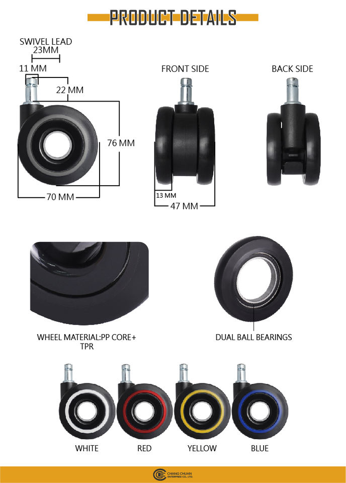 3 Inch Universal Friction Ring Stem Casters 70mm Twin Furniture Castors with Hubless Wheel for Office Chairs