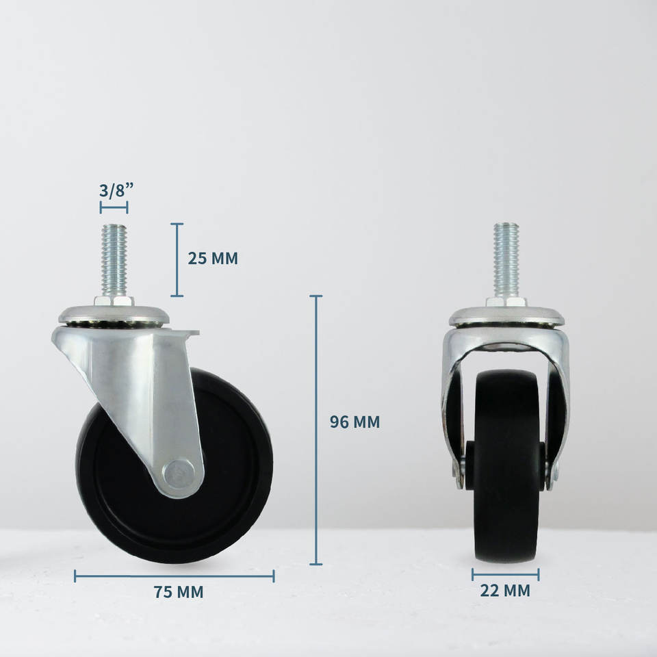 3 Inch Wheels 3/8" X 1" Stem Swivel Caster Polypropylene Wheel for Furniture Trolley