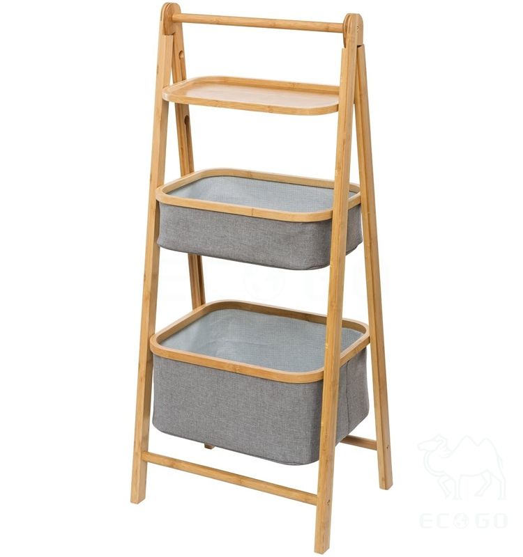 3 Layer Bathroom Large Fabric Laundry Stand Storage Basket Bamboo Bathroom Shelf