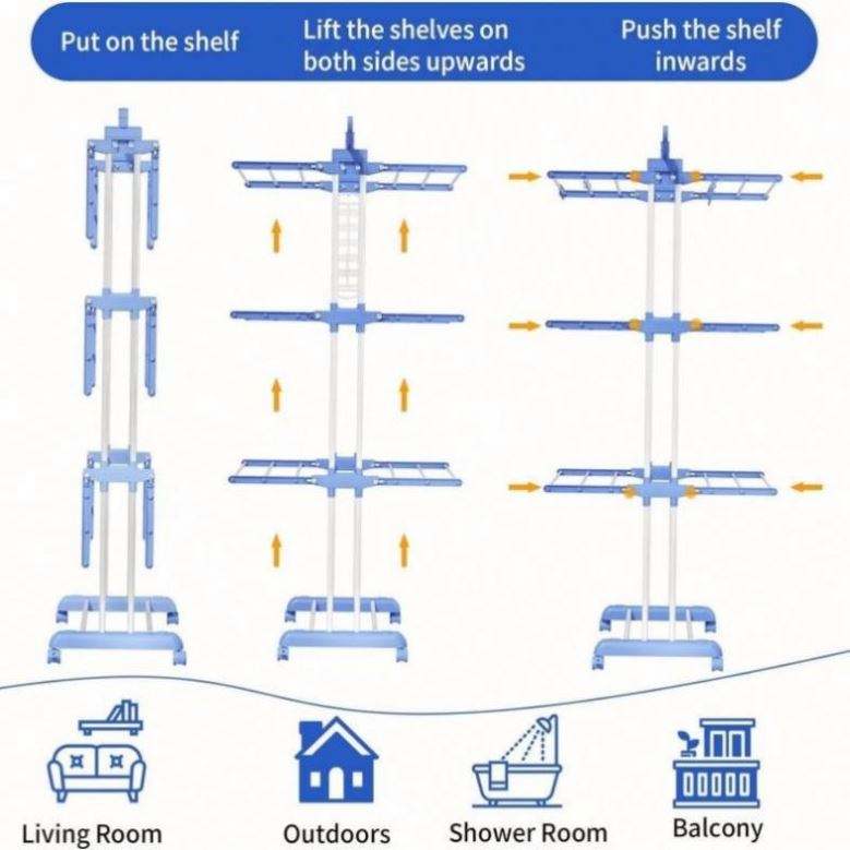 3 Layer Foldable Stainless Steel Stand Drying Rack with Storage Holders Durable & Space Saving for Bathroom and Bag Organizer