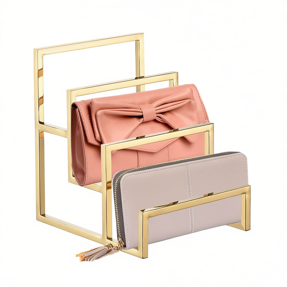 3-Layer Gold Metal Clutch Holder Riser Wallet Display Rack for Home Retail Store Supplies countertop display