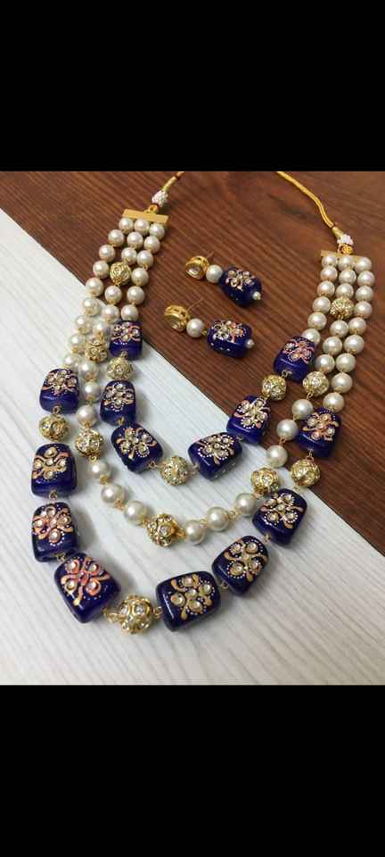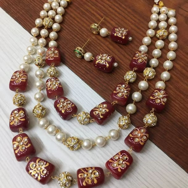 3 Layer High Quality Beads Necklace Set Wholesale Buy Long Pearl Gold Plated Kundan Necklace Set for Women Wedding Party Wear