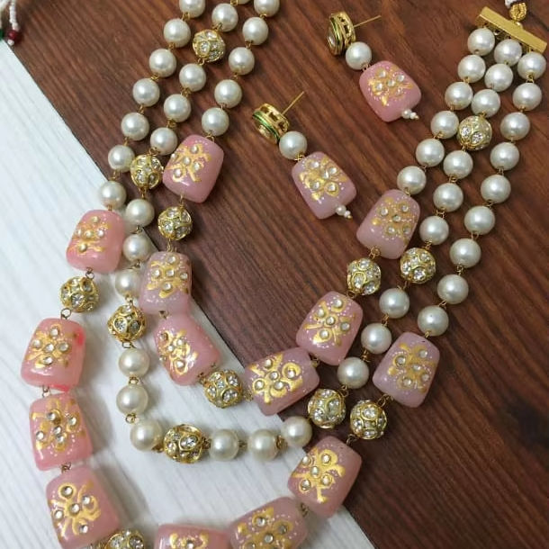 3 Layer High Quality Beads Necklace Set Wholesale Buy Long Pearl Gold Plated Kundan Necklace Set for Women Wedding Party Wear