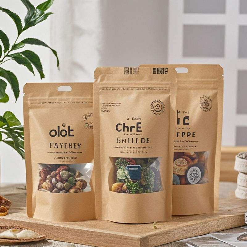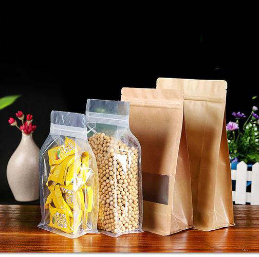 3 Layer Laminated Food Paper Bags Resealable Heat Sealable Kraft Paper Stand up Packaging Pouches Bag With Clear Window