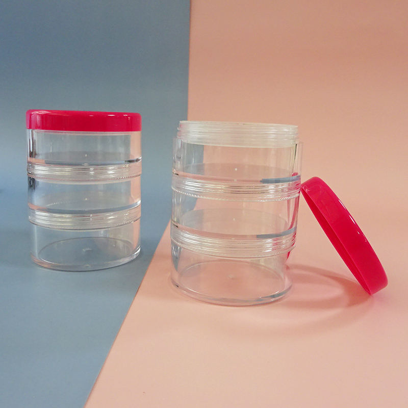 3 Layers Clear Window Loose Powder Case Stackable Plastic Jars 10g With Sifter Empty Cosmetic Loose Powder Jar