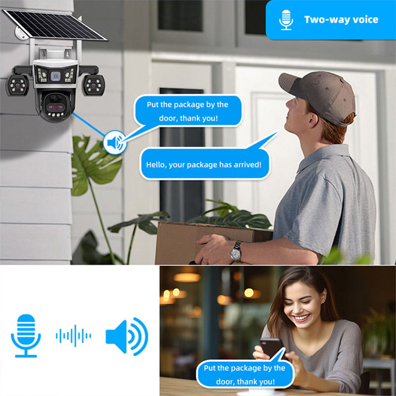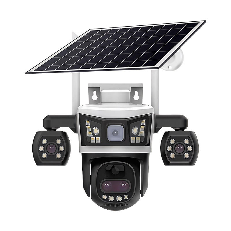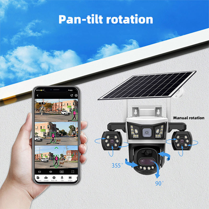 3 Lens Solar Camera with Night Vision 6MP 8000mAh Battery Outdoor Wireless Network Security PTZ Camera