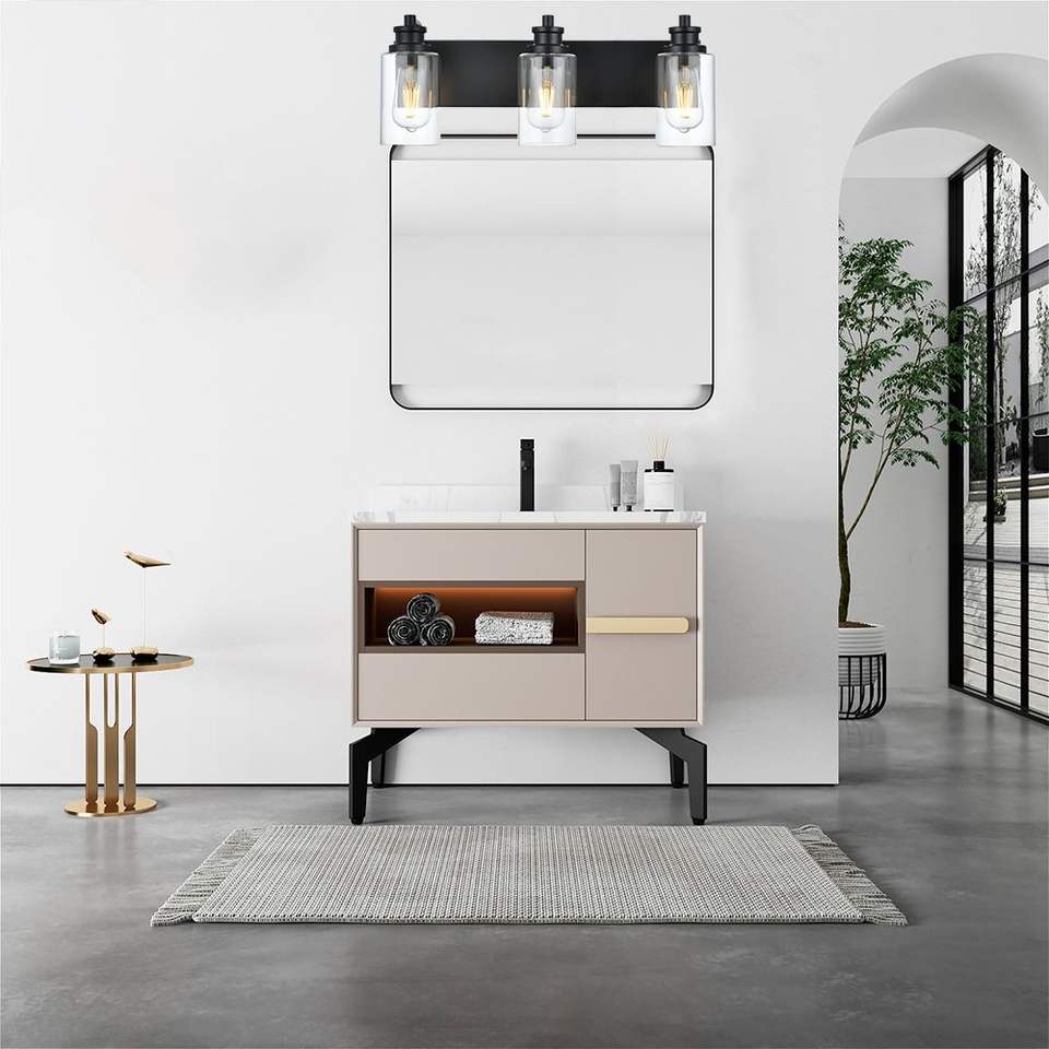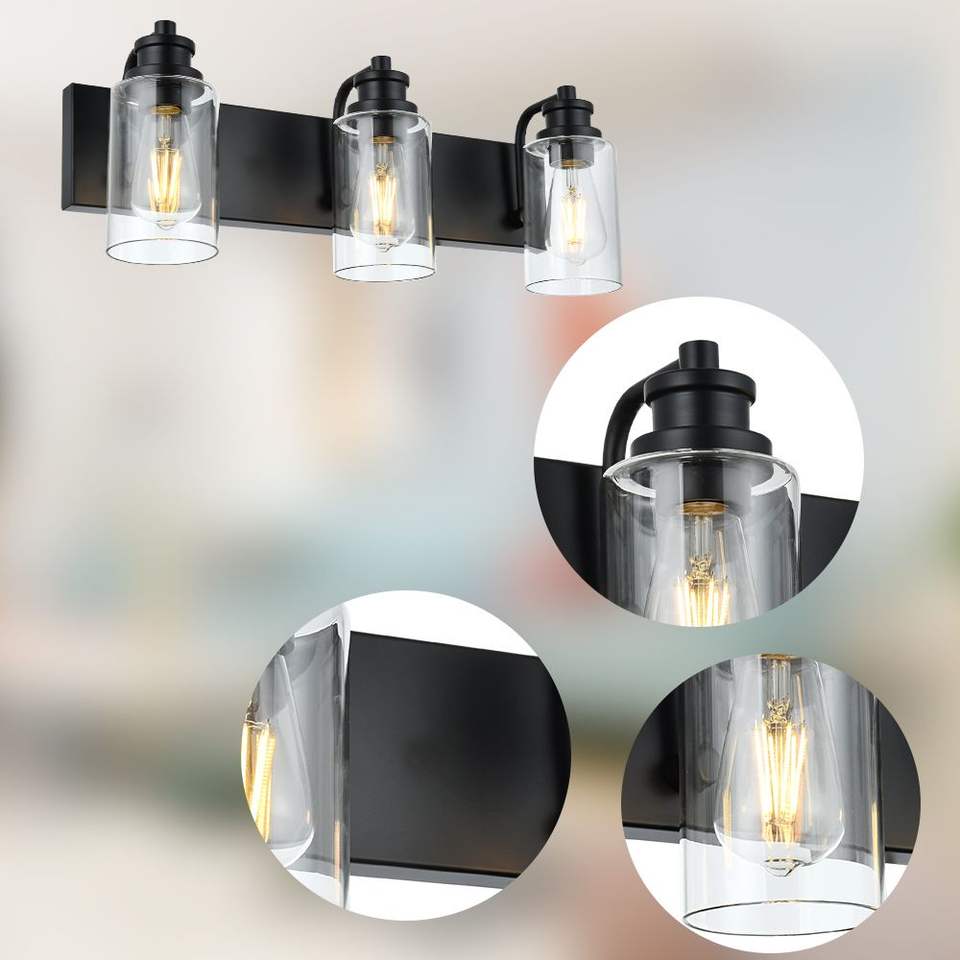 3-Light Black Industrial Wall Mount Lamp Clear Glass Shade Vanity Light Fixtures for Bathroom Over Mirror Lighting