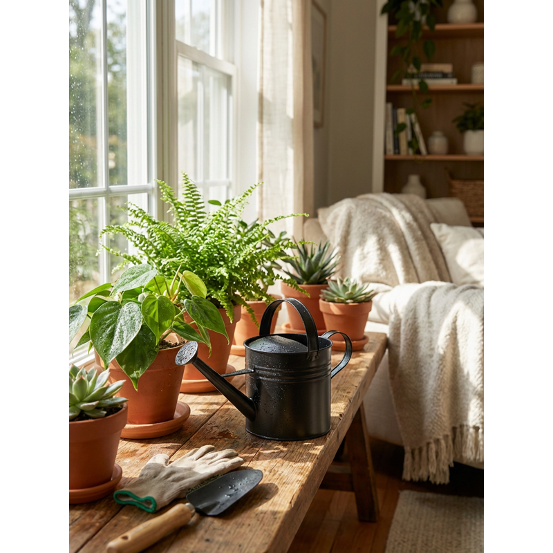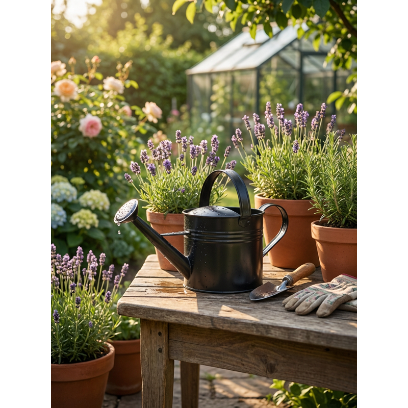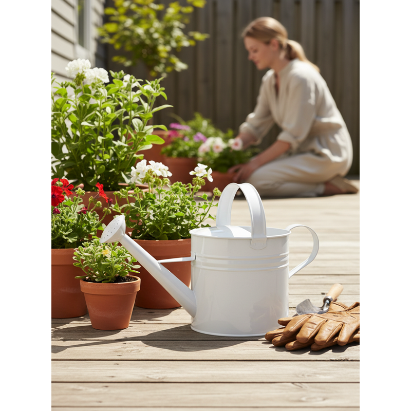 3-Liter Cylindrical Garden Watering Can Metal Watering Can with Removable Spout Decorative Stripes Made Durable Steel Lin Metal