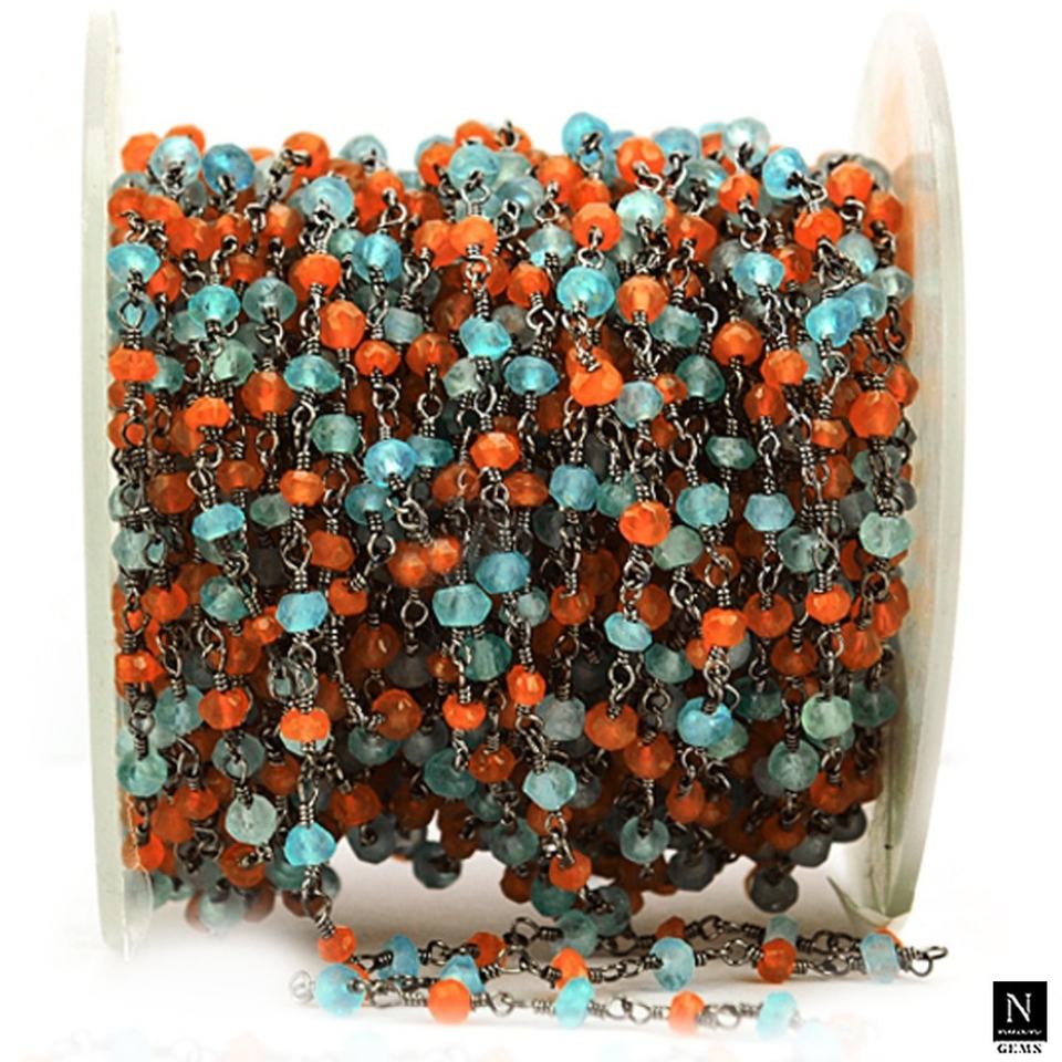 3 MM Carnelian And Aqua Chalcedony Handmade Beads Chain Rosary For Making Necklace Designer Finding Jewelries Gift Women Earring