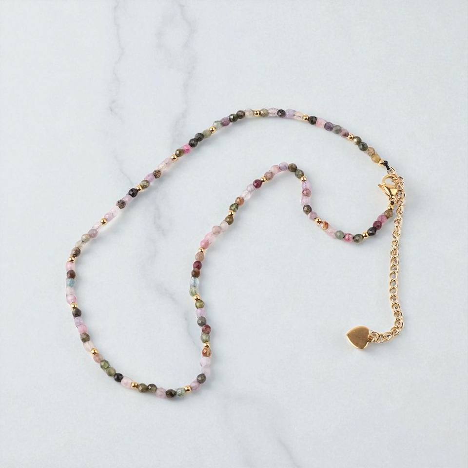 3 MM Round Multi Tourmaline Gemstone Beads Necklace - 925 Silver Adjustable Chain Necklace