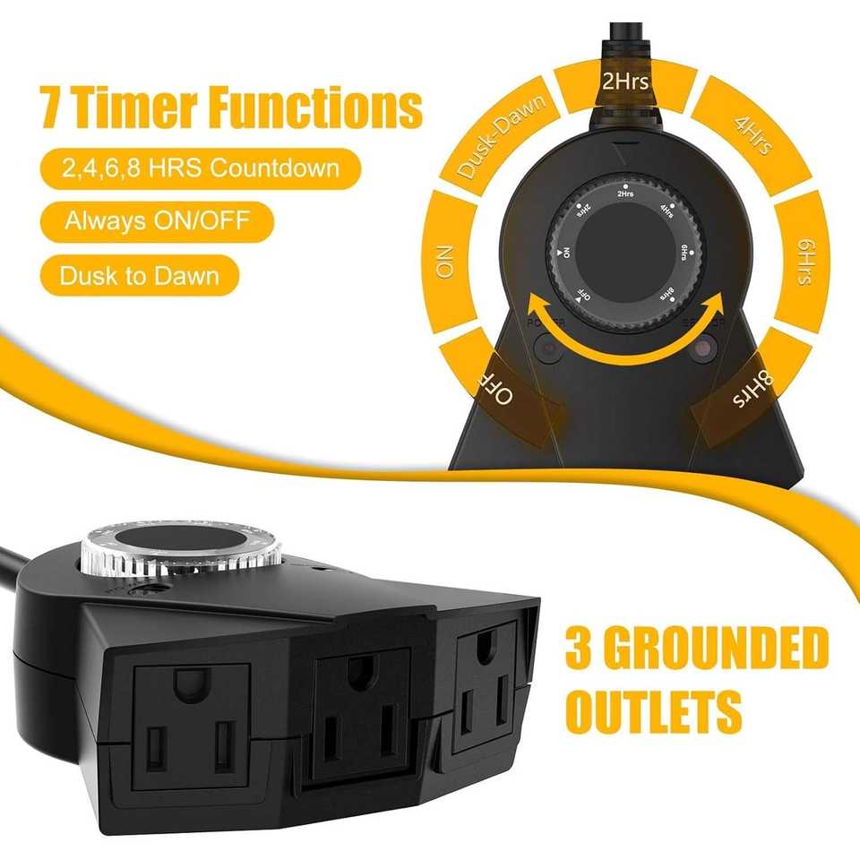3 Outlets Timer Outdoor Light Waterproof Plug-in 24 Hours with 2 4 6 8 Hours Countdown Mode 3 Grounded