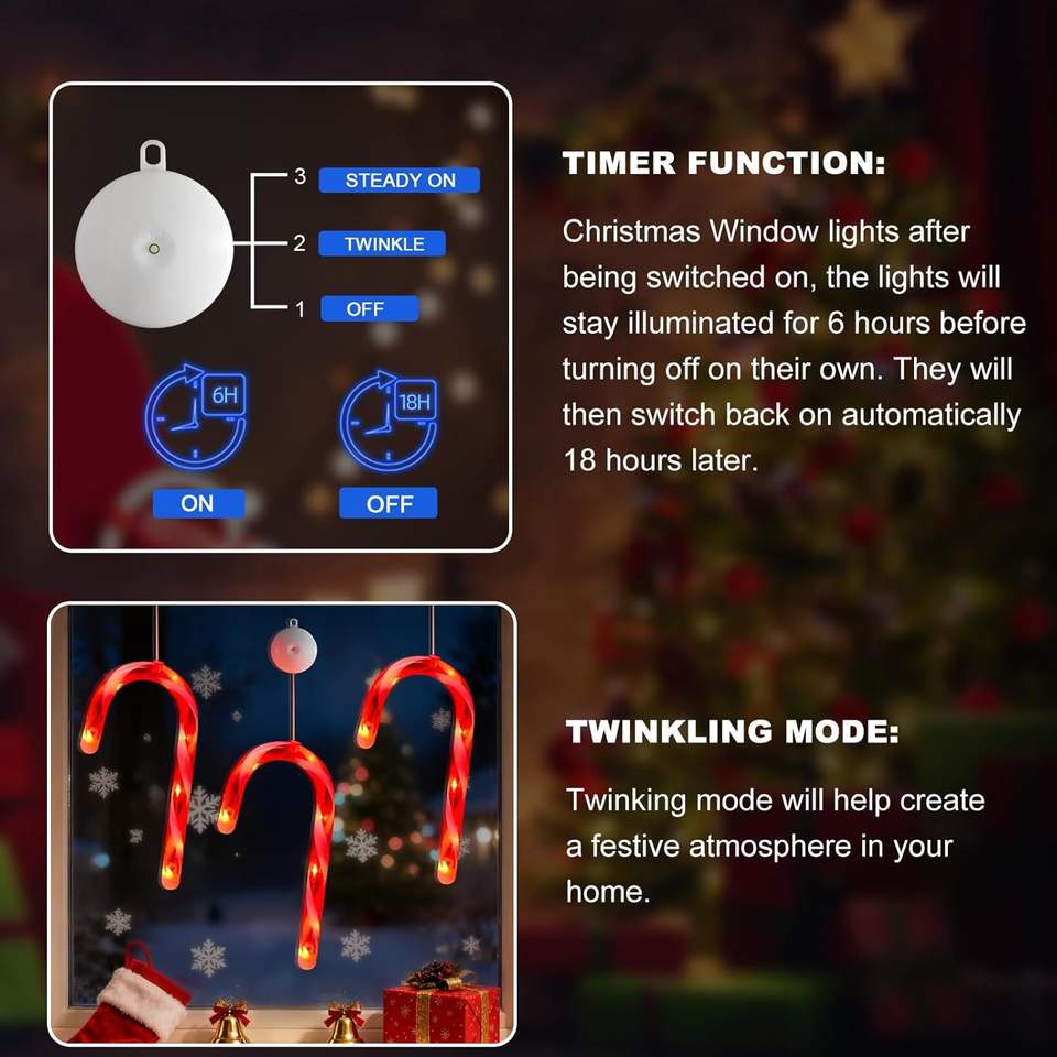 3 Pack Battery-Powered Red LED String Lights Christmas Window Decorations with Timer Candy Cane Design 2026 Ha Christmas Lights