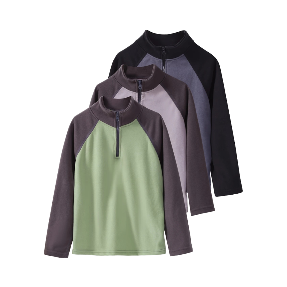 3-Pack Casual Polyester-Spandex Blend Long Sleeve Zippered Stand Collar Color Block Knit Fabric Top Slight Stretch for Outdoor