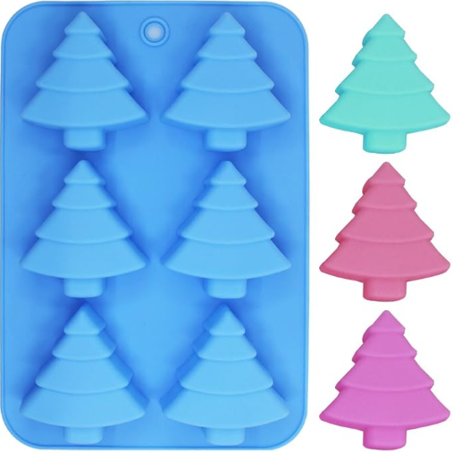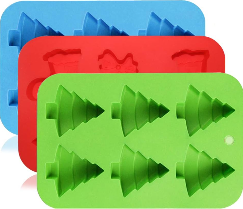 3 Pack FineGood Christmas Silicone Molds Holiday Baking Trays for Cake Candies Chocolates Jelly Soap-Red Blue Christmas Trees