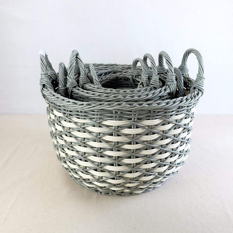 3-Pack Stackable Hand Woven Wicker Storage and Laundry Basket with Comfortable Handles