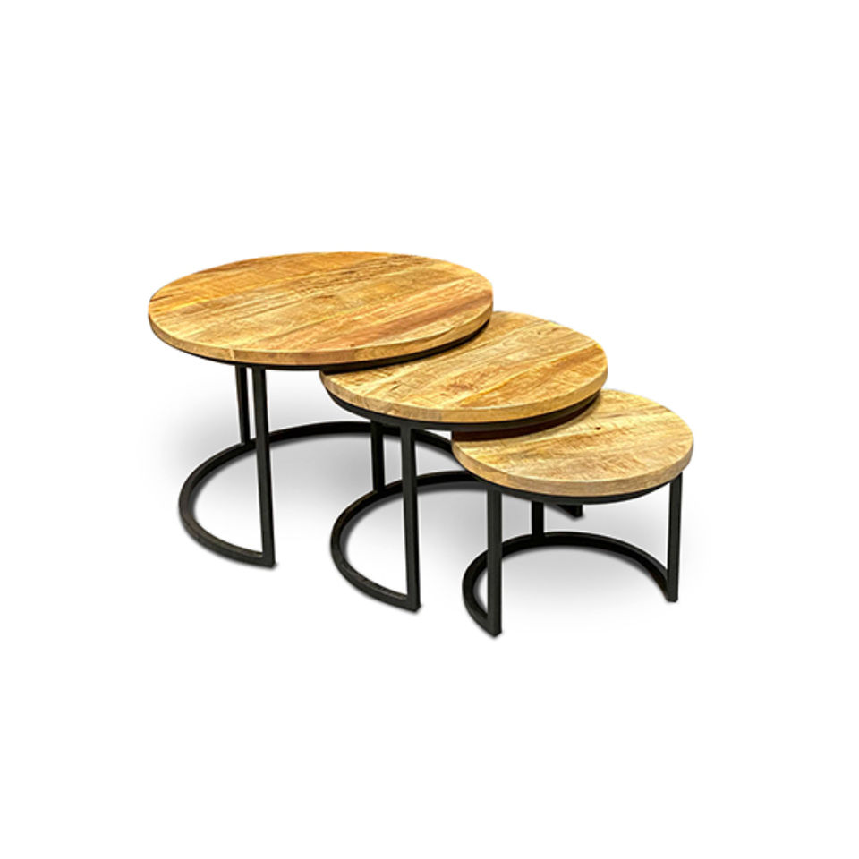 3 Pair of Round Coffee Tables of Nesting Solid Smart Coffee Table Top Rustic Modern Coffee Table for Living Room Furniture