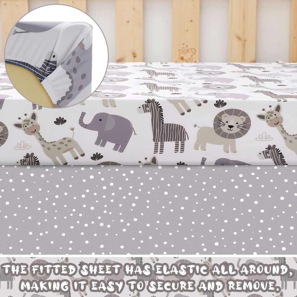 3 Pcs Baby Crib Bedding Set Safari Animals Elephant Zebra Lion Giraffe Neutral Crib Set Includes Quilt Fitted Sheet Skirt