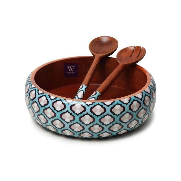 3 Pcs Bowls Set Acacia Wooden Bowl Sticker Printed Enamel Modern Design Serving Bowl and Fruit Bowl for Kitchenware