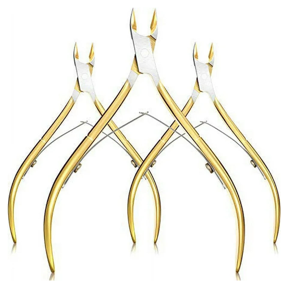 3 Pcs Cuticle Cutter Russian Nippers Pointed Blade Trimmer Stainless Steel Nail Clippers Manicure Tools Wide Jaw Opening Gift