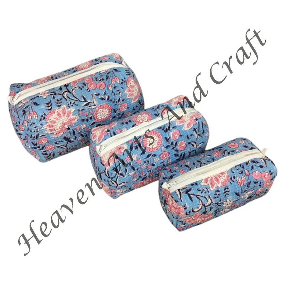 3 Pcs Set Cotton Quilted Toiletry Bags Unisex Makeup Storage Zipper Hand Printed Bags Pouch Jewelry Cosmetic Bags And Cases