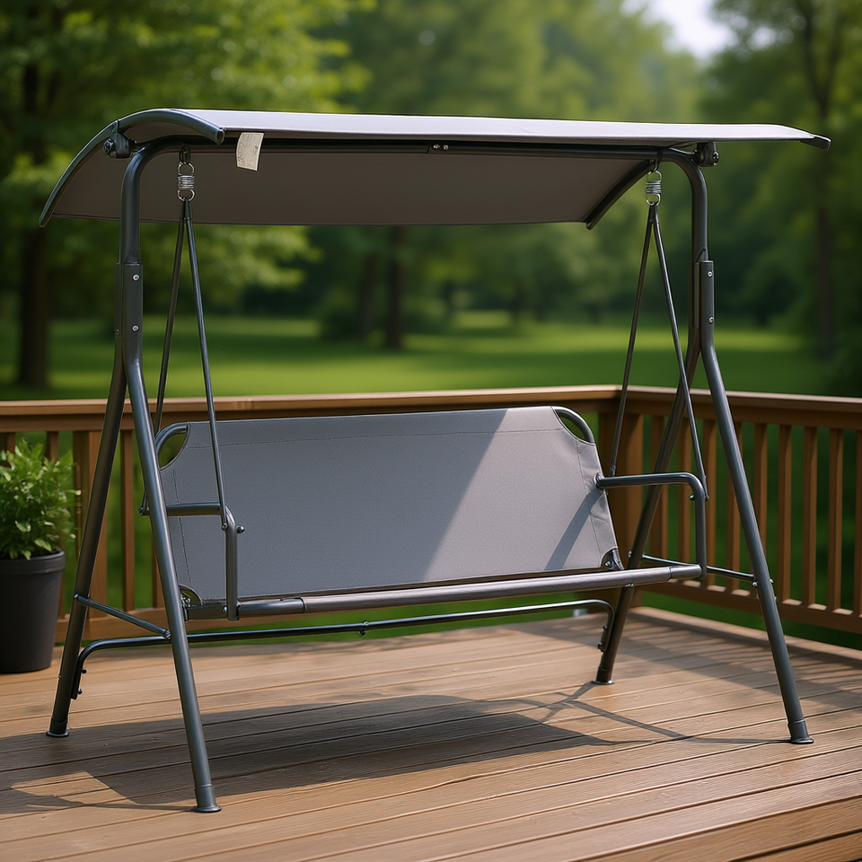 3 Person Outdoor Patio Swing With Adjustable Canopy Steel Frame Gray Bench Style Seat Contemporary Design