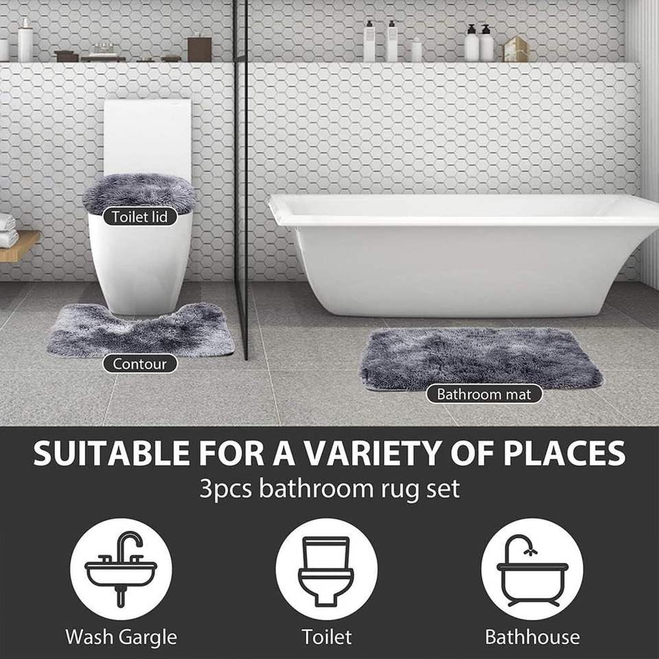3 Piece Bathroom Rug Set Super Soft Toilet Bathroom Toilet Tub Air Floor Mat Nonslip Mat Carpet Nonslip Carpet Set Long Wool Mat