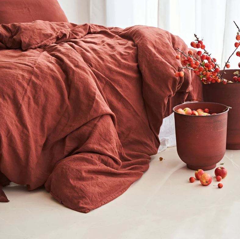 3 Piece Cotton Bedding Set Red Brick Color Custom Size Stonewashed Wedding Donna Quilt Cover With 2 Pillow Case Coconut Button