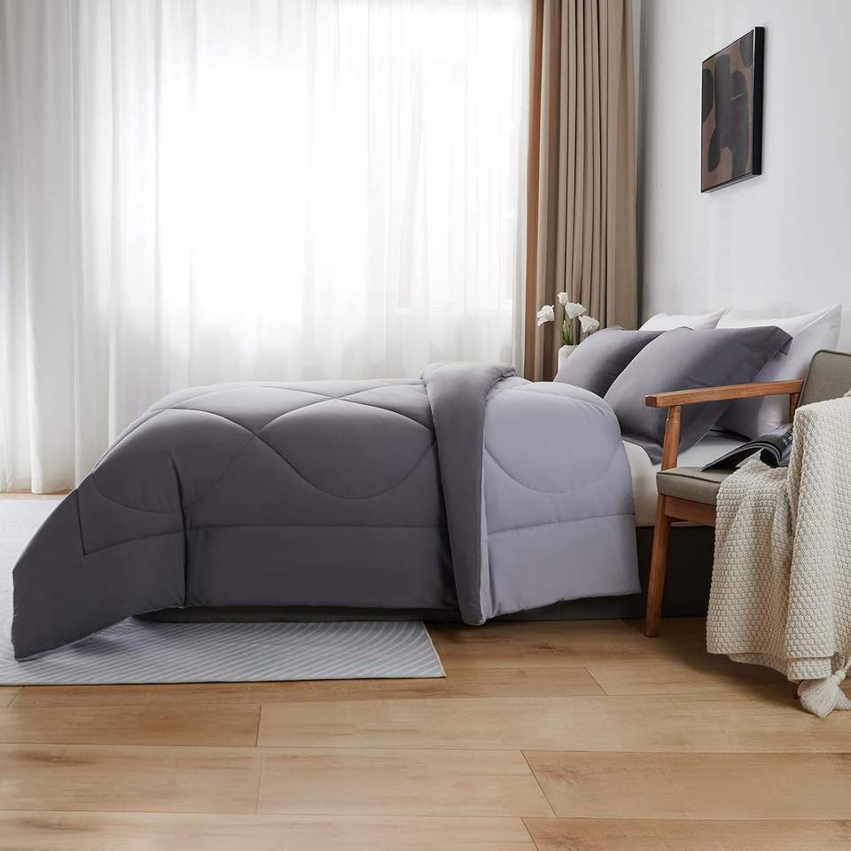 All Season Reversible 3-Piece Cotton Bed Comforter Set with 2 Pillow Shams Anti-Bacteria & Water Resistant Alternative Filling