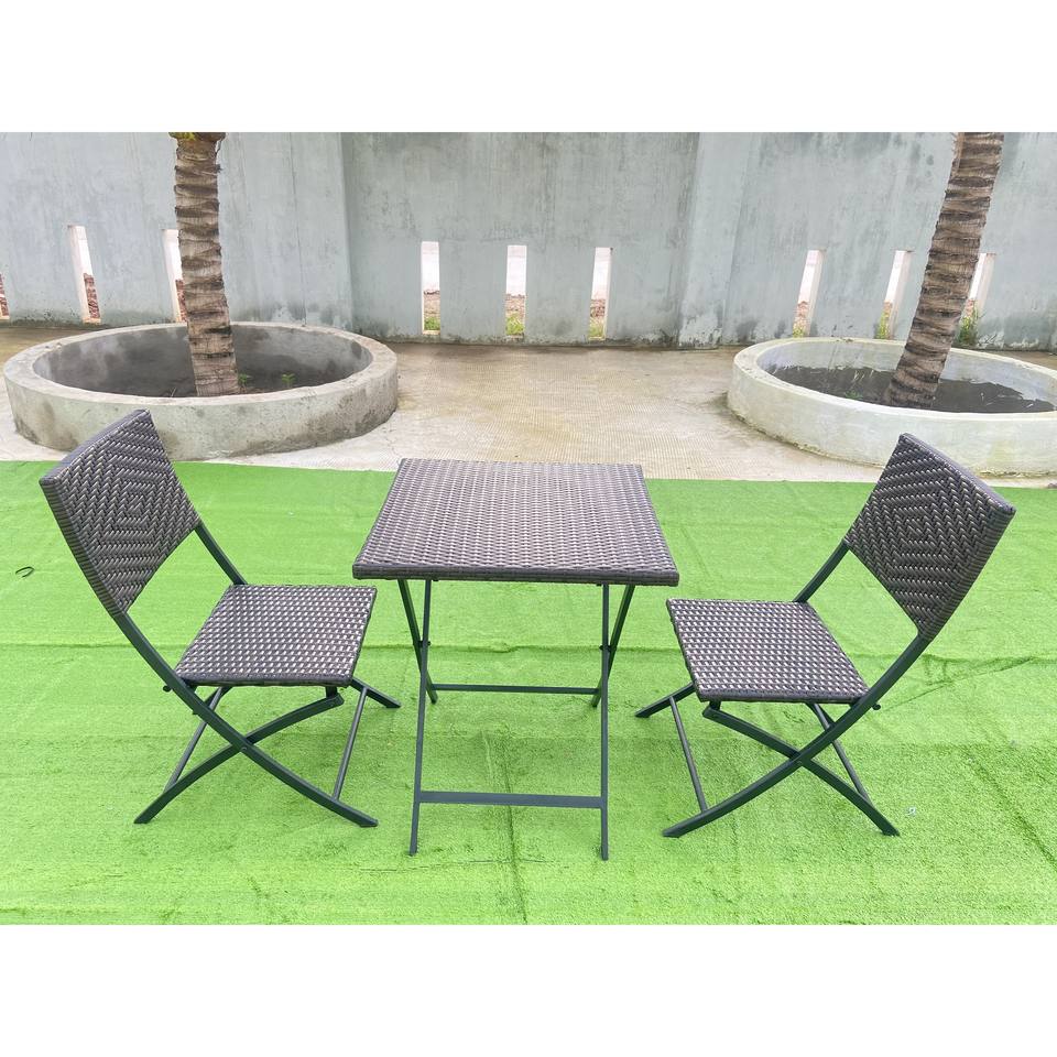 3-Piece Folding Bistro Set Square Table & 2 Rattan Chairs for Outdoor Garden Use by NEWSUN Vietnam