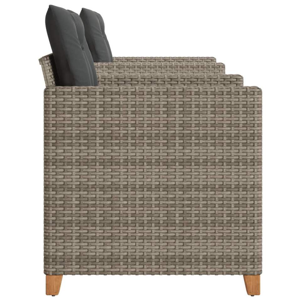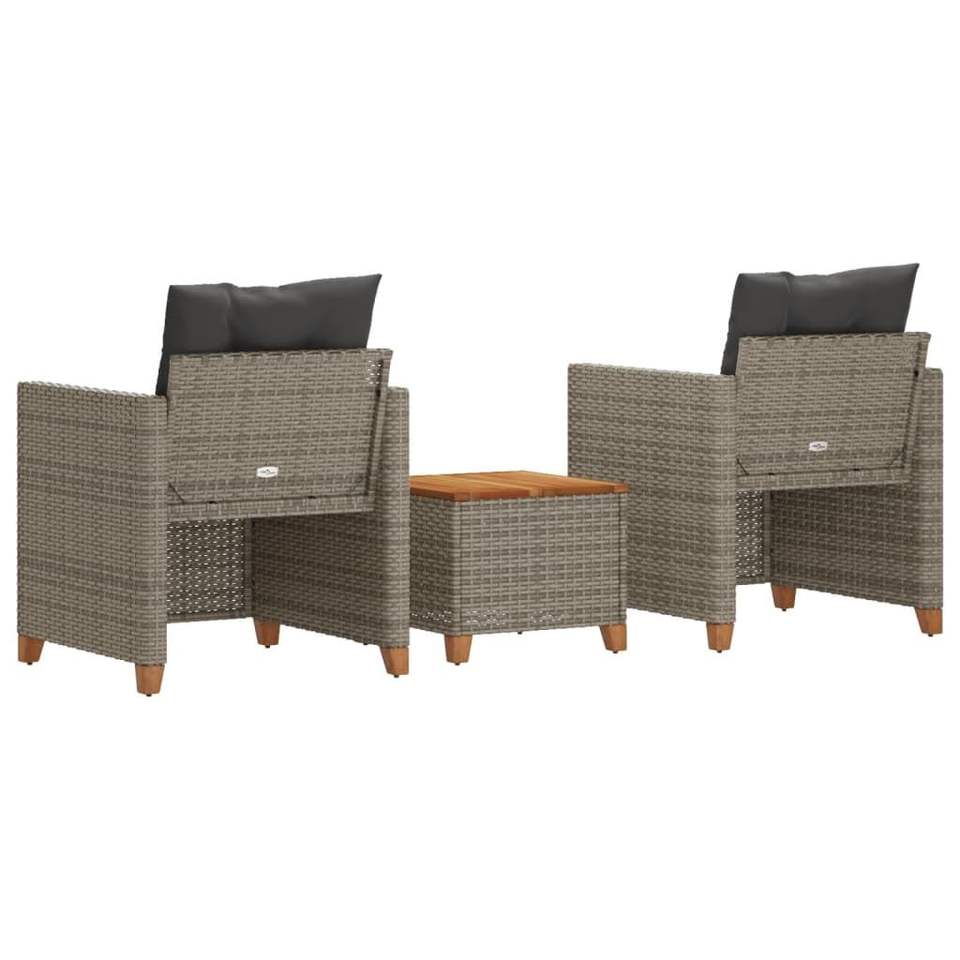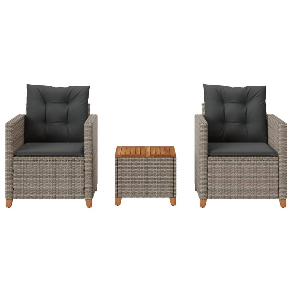 3-Piece Gray Poly Rattan Acacia Wood Bistro Set with Cushions Garden Bistro Table and Chairs