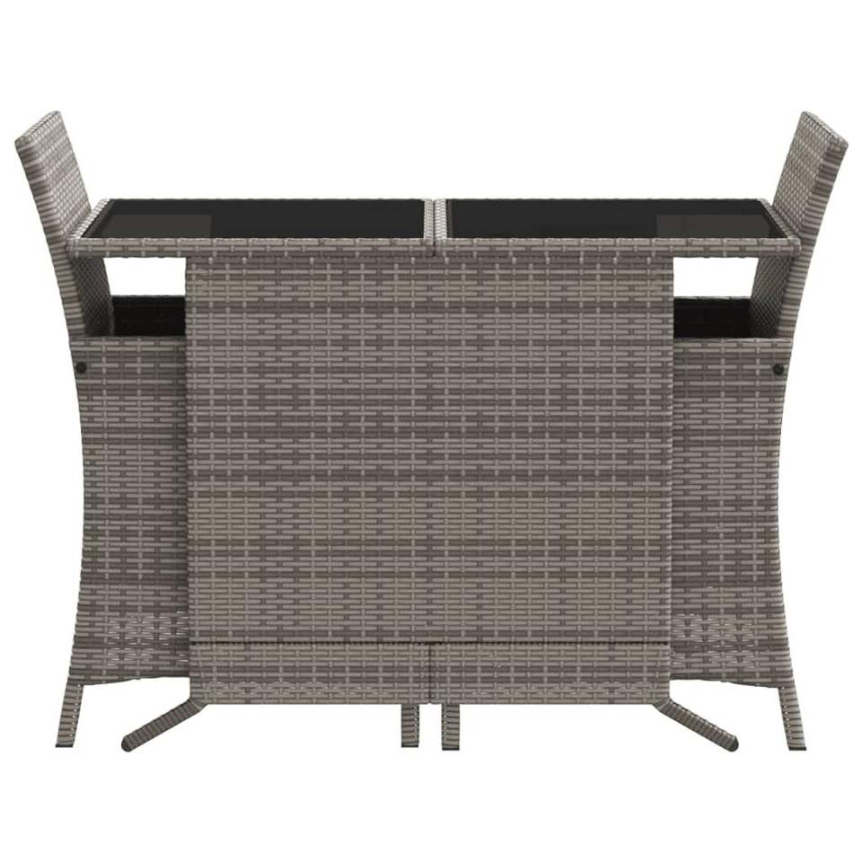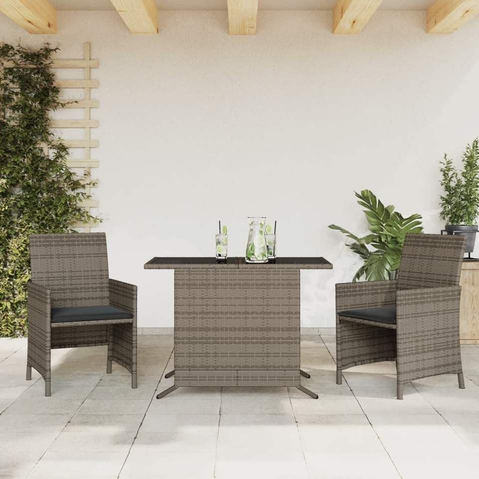 3-Piece Gray Poly Rattan Bistro Set with Cushions Garden Sets