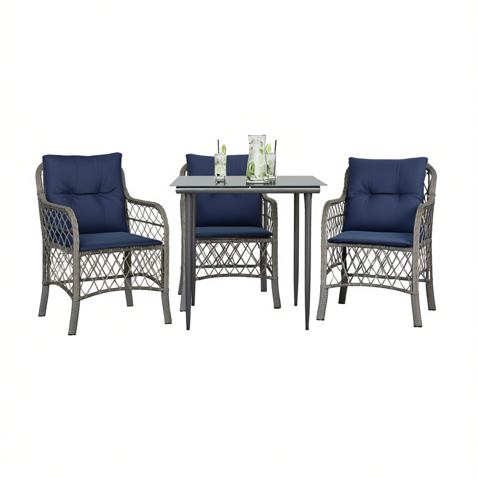 3 Piece Gray Poly Rattan Bistro Set With Cushions Garden Outdoor Furniture