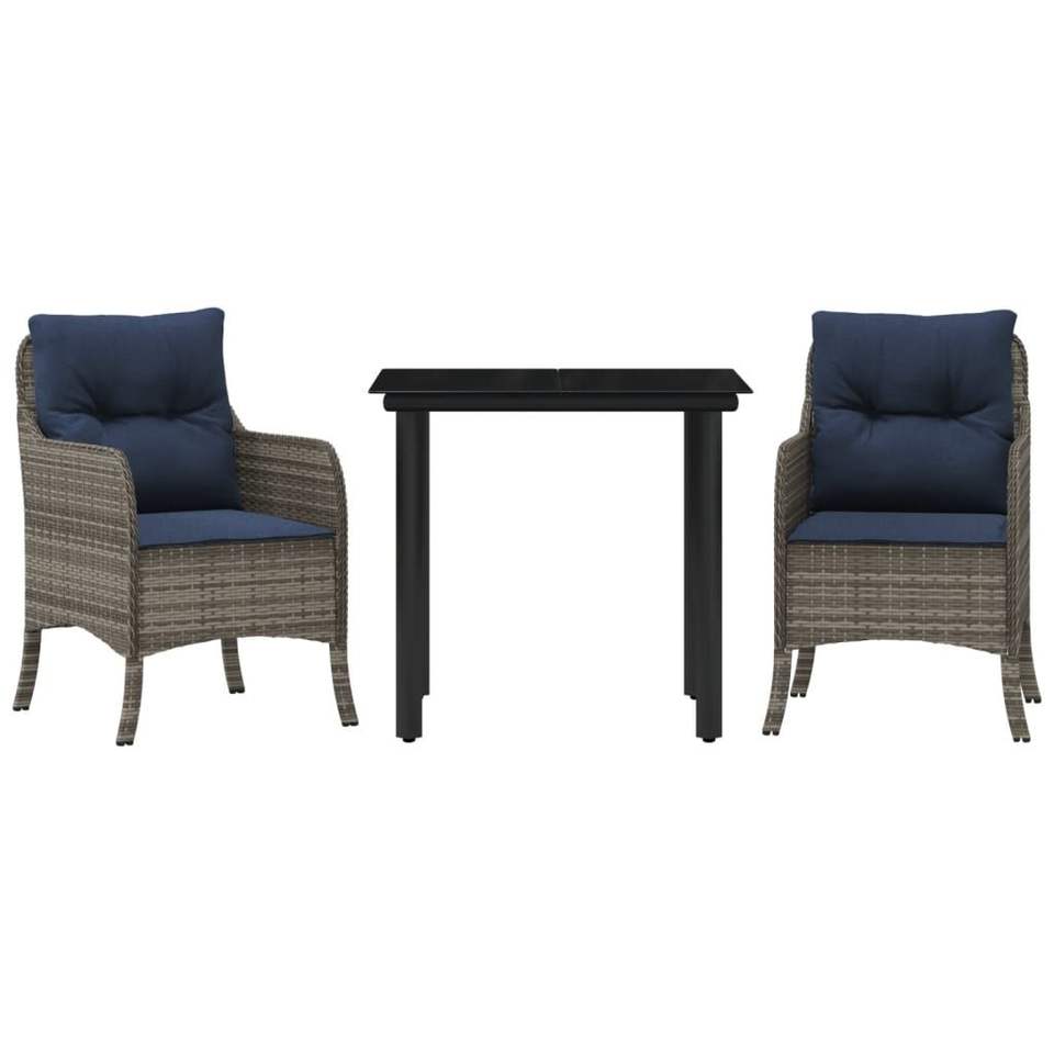 3-Piece Gray Poly Rattan Patio Dining Set with Cushions Garden Sets