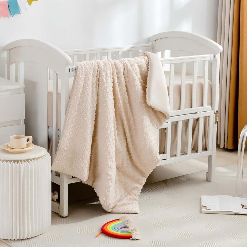 3 Piece Jacquard Tufted Geometric Crib Bedding Set Includes Skirt Blanket and Sheet