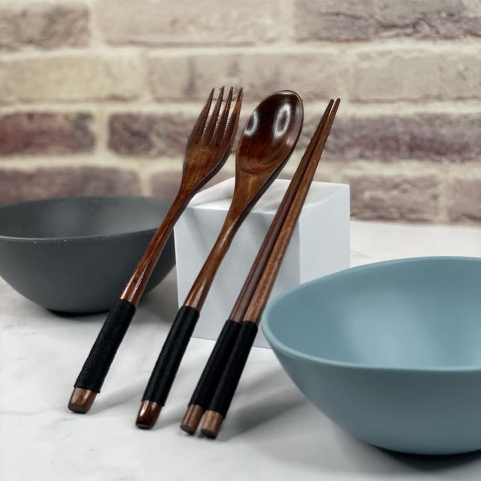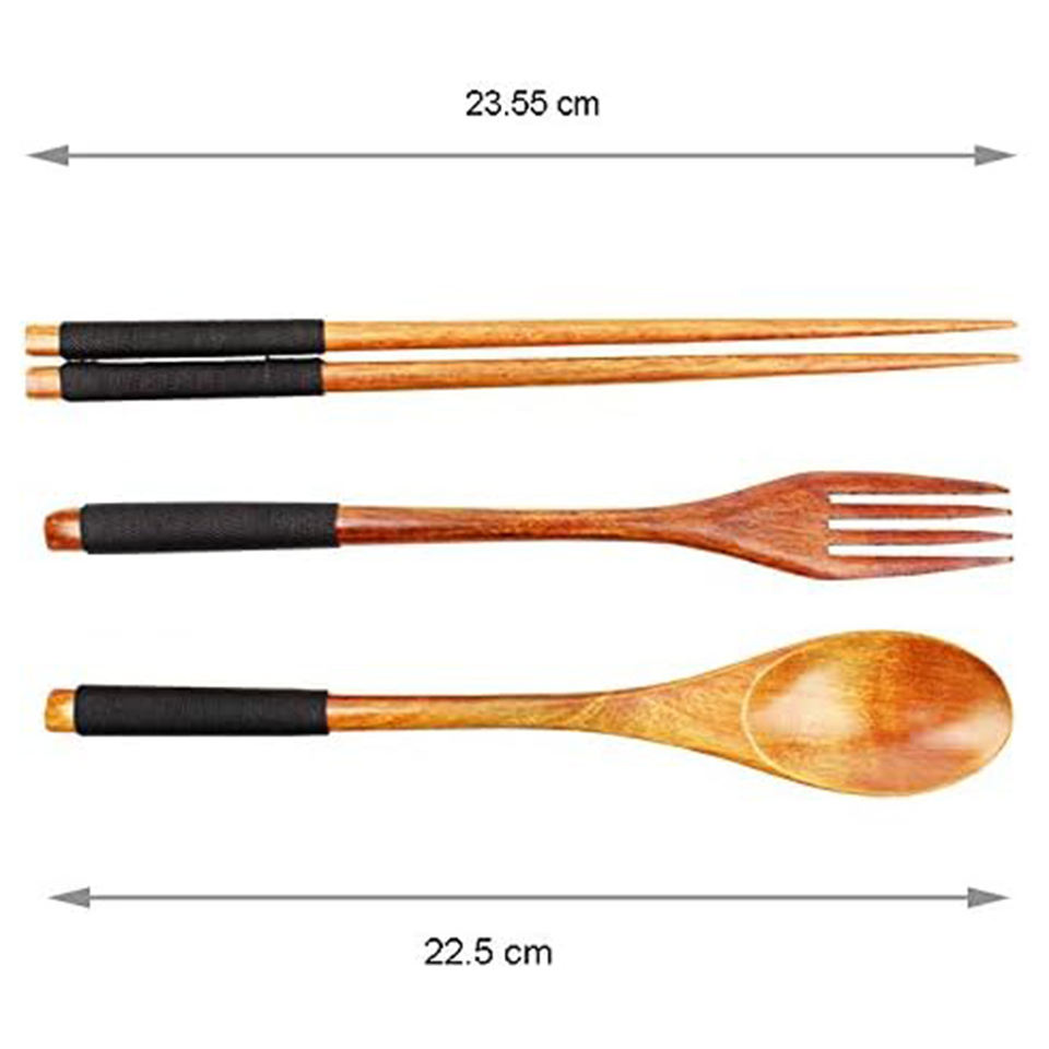 3-Piece Japanese Style Wooden Utensil Set Spoon Fork and Chopsticks with Floral Pouch,Foodie Travel Novelty Business by AYAANS