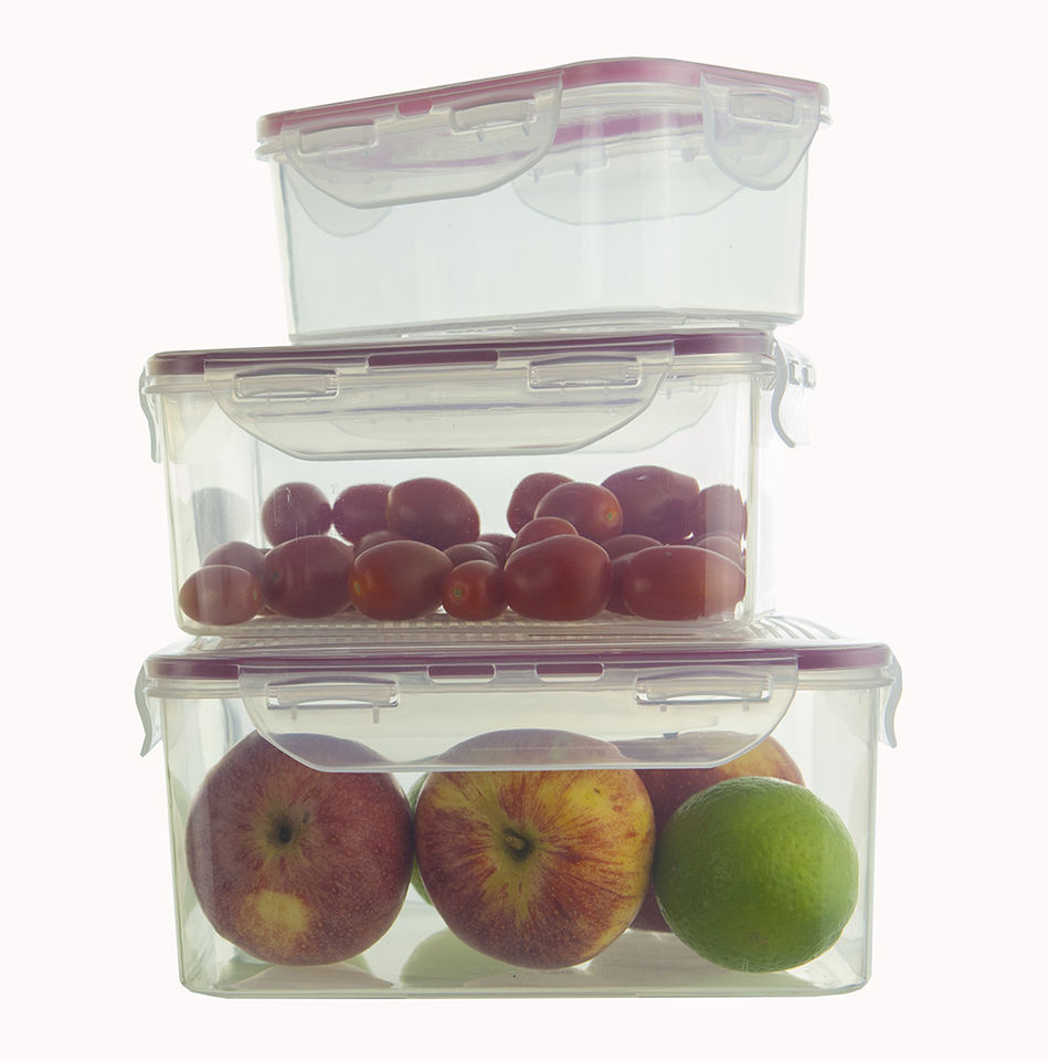 3-Piece Kitchen Canister Set Plastic Take Away Food Container 1.6L/1L/0.5L with Clear Airtight Lids Simple Fast Lock Lunch Boxes