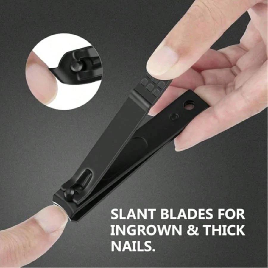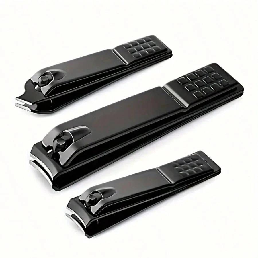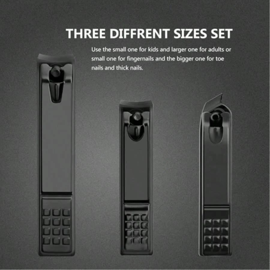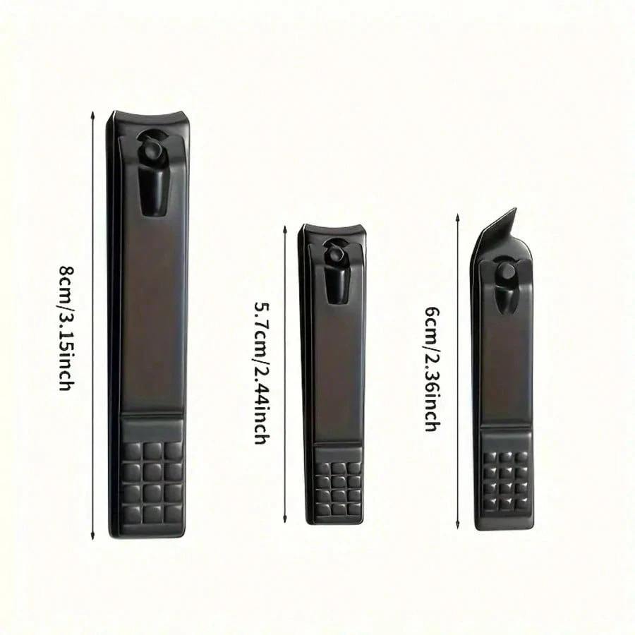 3-Piece Matte Black Stainless Steel Beauty Nail Clippers Set Heavy Duty Straight Blade Fingernails & Toenails Ingrown Nails Men