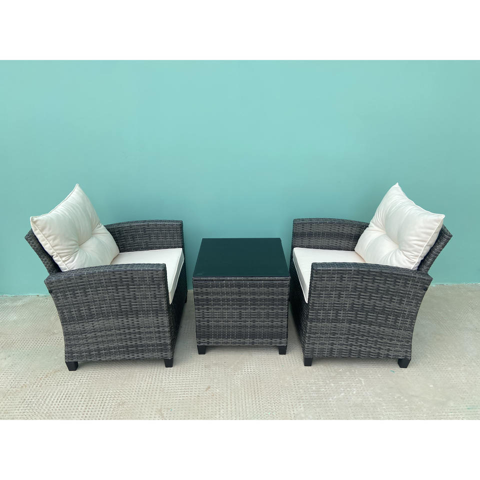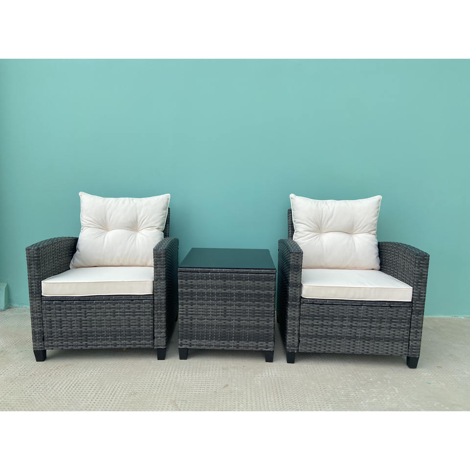 3-Piece PE Rattan Patio Bistro Set with Comfortable Cushioned Armchairs and Stylish Glass-Top Side Table for Outdoor Garden Use