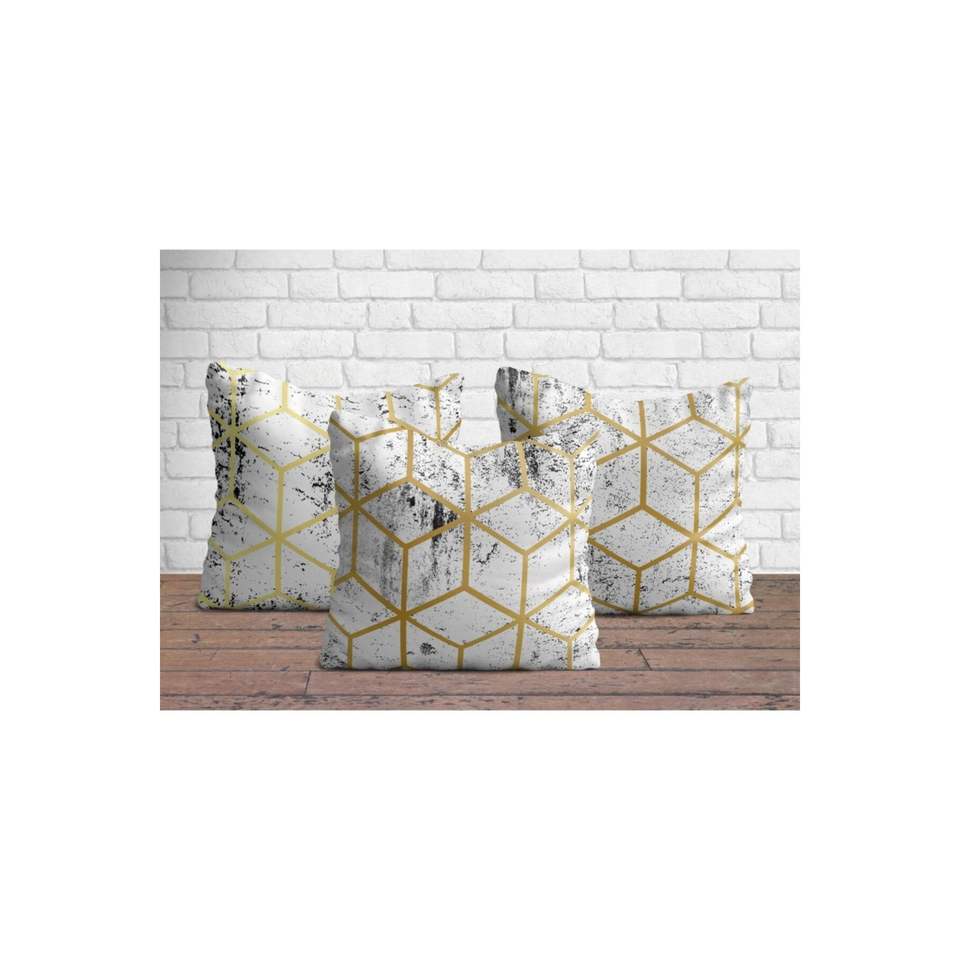 3-Piece Plush and Versatile Cushion Cover Set 18x18 Organic Square Throw Pillows with Geometric and Leaves Pattern