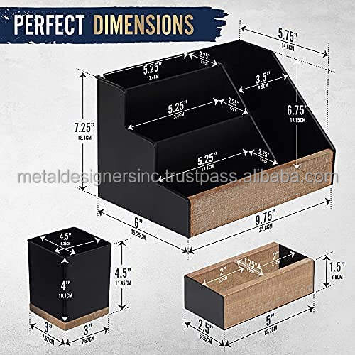 3-Piece Rustic Industrial Home Decor Galvanized Metal Desk Organizer Set Great for Desktop Storage & Mail Organization