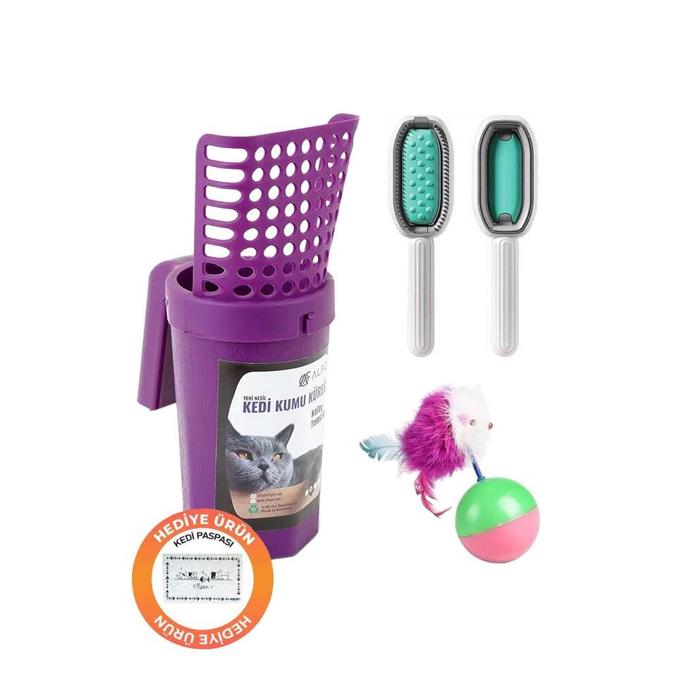 3-Piece Set Purple Cat Litter Scoop Multifunctional Scratching Post New Generation Mouse-Shaped Cat Litter Box Accessories