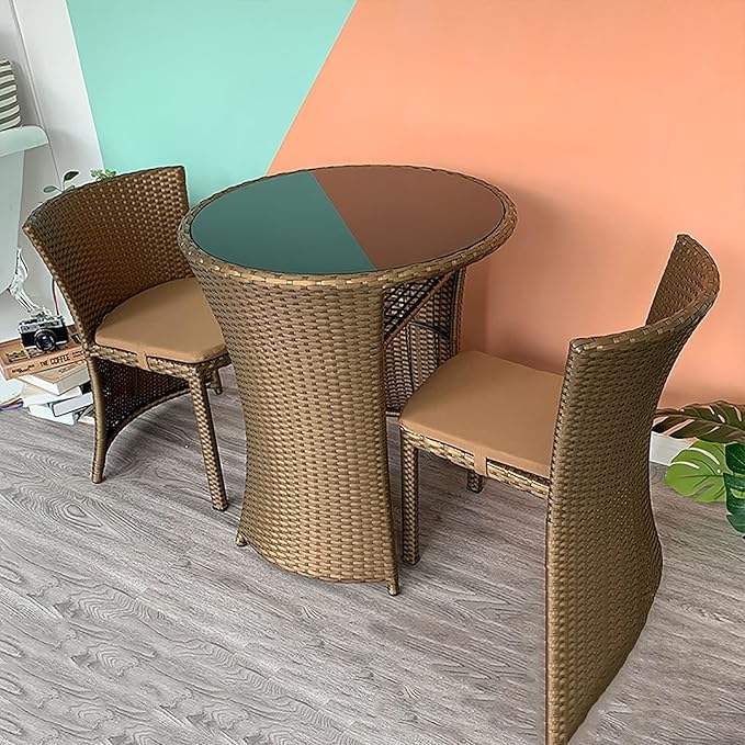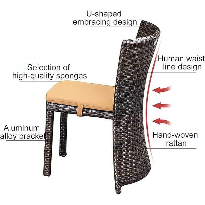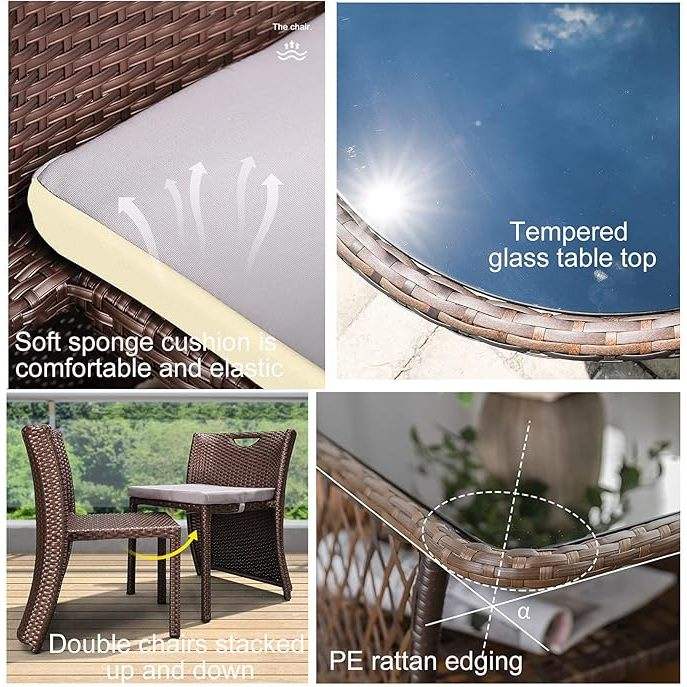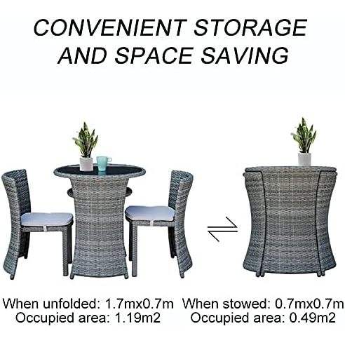 3-Piece Space Saving Outdoor Patio Rattan Furniture Set Wicker Bistro Set with Cushions No Assembly Required
