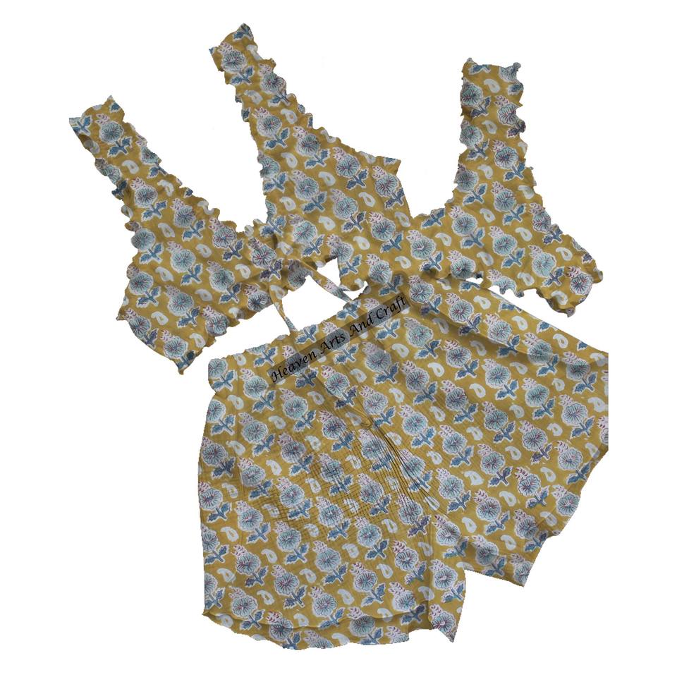 3 Pieces Breathable Sexy Underwear Bra Briefs High Quality Sexy Bra And Panty Shorts Set 100% Cotton Fabric Hand Block Print
