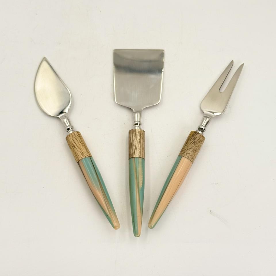 3 Pieces Metal Silver Polished Cheese Sets With Resin Handle for Breakfast Table Cheese Knives Butter Spreader Sets