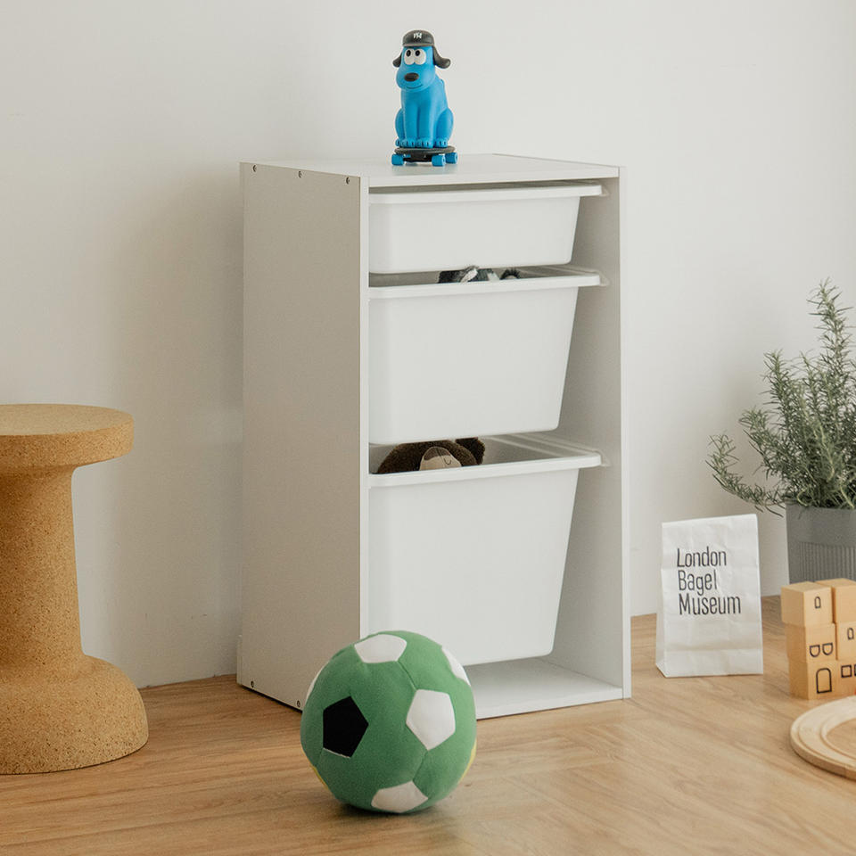 3 Plastic Bins Wooden Baby Children Kids Toy Storage Organizer