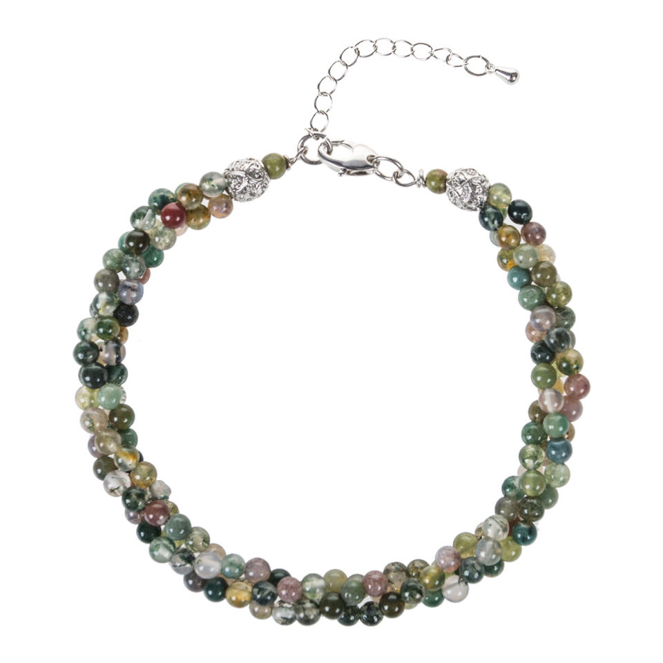 WENCHI TWB808 3 Rows of Naturally Twisted Gemstone Beads Crystal Jade Bracelet & Bangle