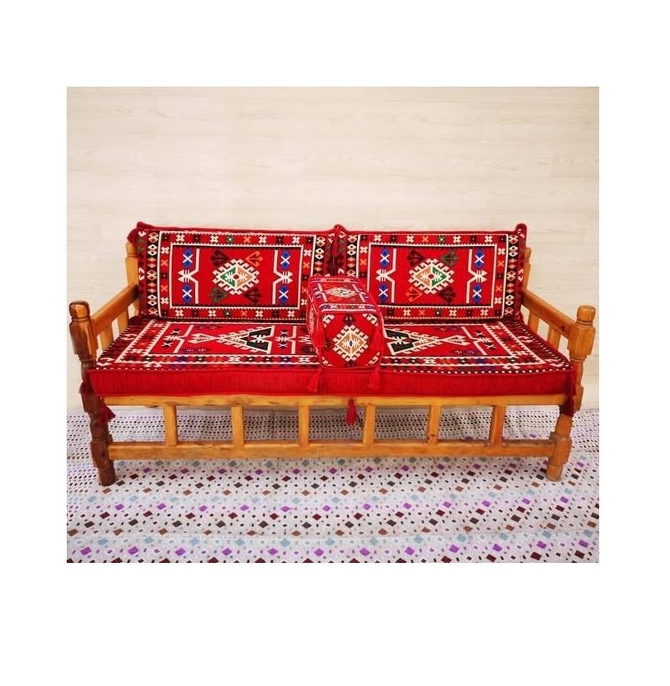 3 Seater Oriental Cushioned Solid Wood Sofa Set | Wooden Sofa+Cushion+Pillows+Armrest FULL | Solid Wood Sofa