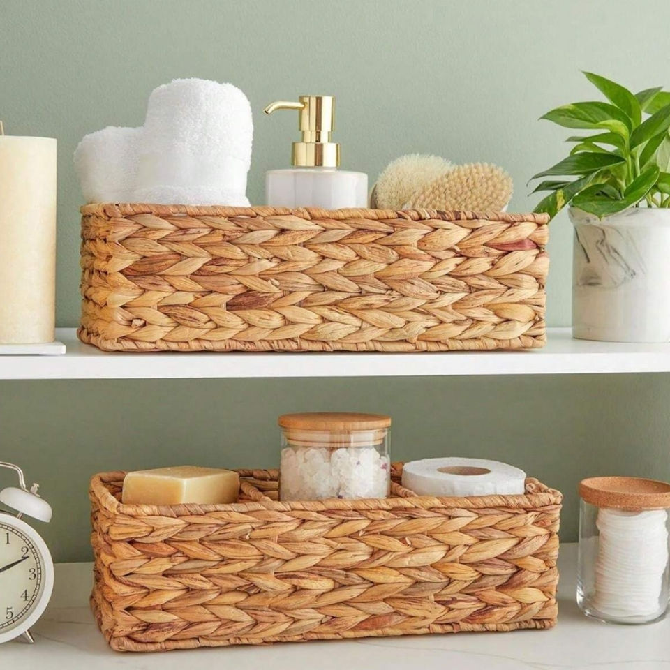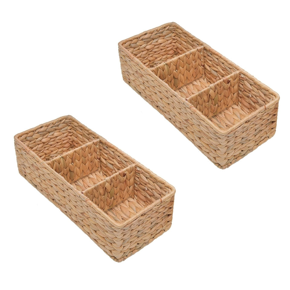 3 - Section Wicker Water Hyacinth Baskets (Set of 2) Eco-Friendly Organizing for Export in Bulk Home Decor for Kitchen