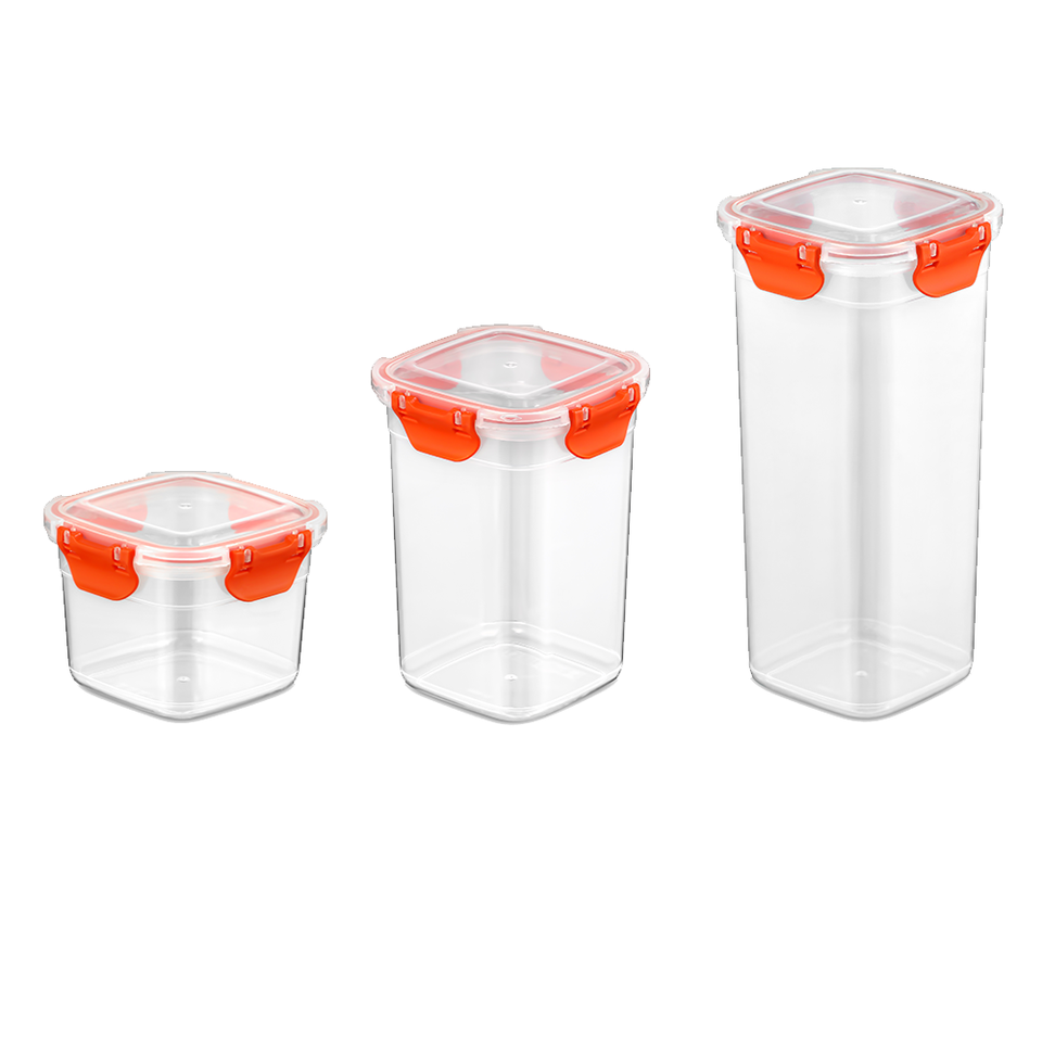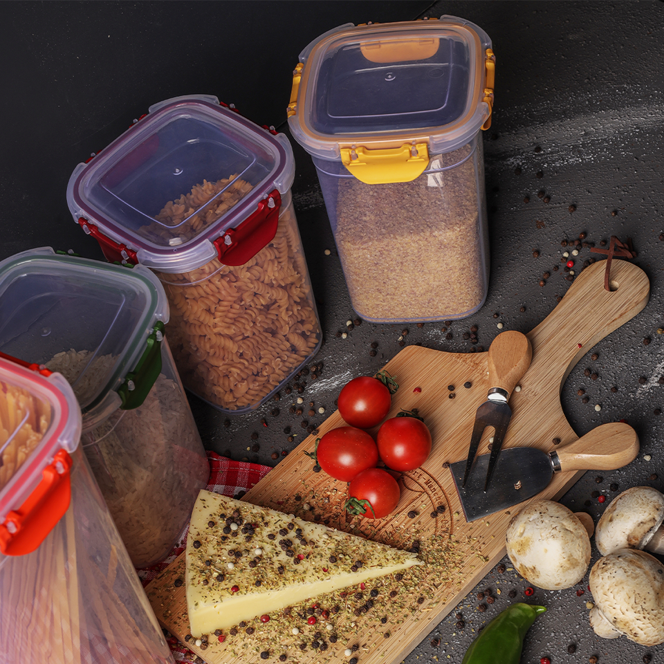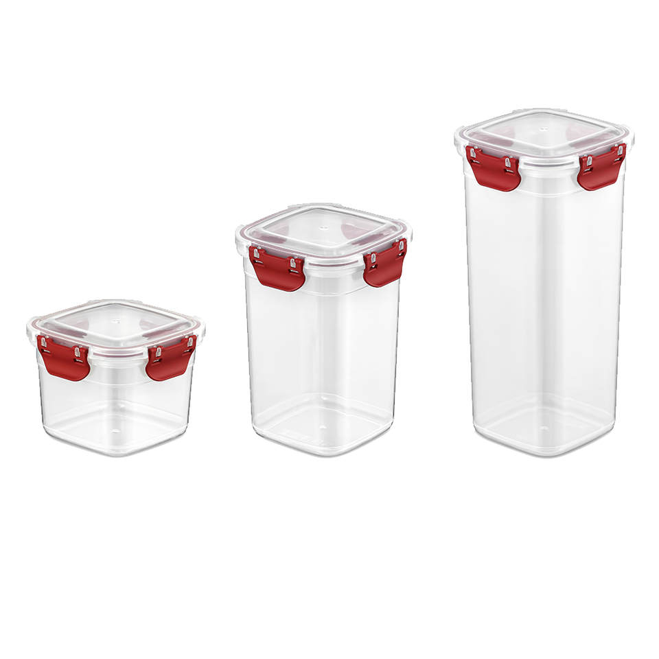 3 Tall Airtight Kitchen Spice Storage Containers 750ML 1500ML 2250ML BPA Free PP Plastic Lockable Leak Proof Stackable