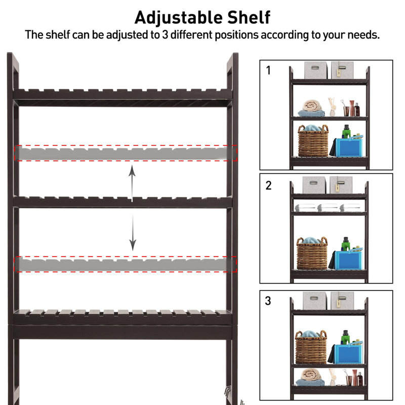 3-Tier Bamboo Adjustable Over Toilet Storage Rack Bath & Toilet Supplies